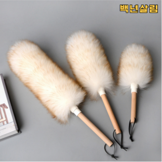 백년살림 양모 먼지털이개 가정용 사무실용 차량용 원목 손잡이, 먼.털 - 소, 1개