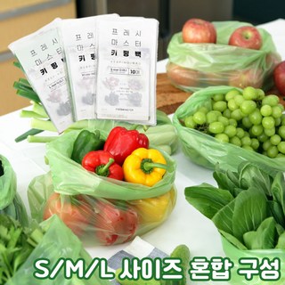 프레시마스터 야채 신선 유지 키핑백 S/M/L 묶음 구매 - 옥수수원료 신선도유지 그린백 야채 보관 봉투, S+M+L, 1개