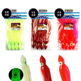 백경 대구꼴뚜기 루어 야광 한포장4개입 대구꼴뚜기웜, 빨강흰색, 4개